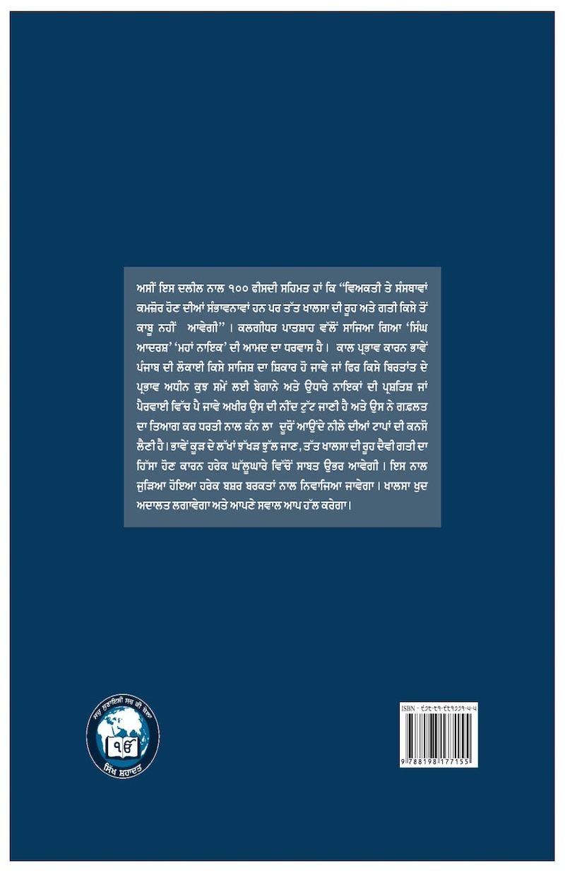 ਅਸੀਂ ਇਸ ਦਲੀਲ ਨਾਲ 100 ਫੀਸਦੀ ਸਹਿਮਤ ਹਾਂ ਕਿ “ਵਿਅਕਤੀ ਤੇ ਸੰਸਥਾਵਾਂ ਕਮਜ਼ੋਰ ਹੋਣ ਦੀਆਂ ਸੰਭਾਵਨਾਵਾਂ ਹਨ ਪਰ ਪਰ ਤੱਤ ਖਾਲਸਾ ਦੀ ਰੂਹ ਅਤੇ ਗਤੀ ਕਿਸੇ ਤੋਂ ਕਾਬੂ ਨਹੀਂ ਆਵੇਗੀ”। ਕਲਗੀਧਰ ਪਾਤਸ਼ਾਹ ਵੱਲੋਂ ਸਾਜਿਆ ਗਿਆ ‘ਸਿੰਘ ਆਦਰਸ਼’ ‘ਮਹਾ ਨਾਇਕ’ ਦੀ ਆਮਦ ਦਾ ਧਰਵਾਸ ਹੈ ਅਕਾਲ ਪ੍ਰਭਾਵ ਕਾਰਨ ਭਵੇ ਪੰਜਾਬ ਦੀ ਲੁਕਾਈ ਕਿਸੇ ਸਾਜਿਸ਼ ਦਾ ਸ਼ਿਕਾਰ ਹੋ ਜਾਵੇ ਜਾਂ ਫਿਰ ਕਿਸੇ ਬਰਤਾਂਤ ਦੇ ਪ੍ਰਭਾਵ ਅਧੀਨ ਕੁਝ ਸਮੇਂ ਲਈ ਬੇਗਾਨੇ ਅਤੇ ਉਧਾਰੇ ਦਾਇਕਾਂ ਦੀ ਪ੍ਰਸ਼ਤਿਸ਼ ਜਾਂ ਪੈਰਵਾਈ ਵਿੱਚ ਪੈ ਜਾਵੇ ਅਖੀਰ ਉਸ ਦੀ ਨੀਂਦ ਟੁੱਟ ਜਾਣੀ ਹੈ ਅਤੇ ਉਸ ਦੇ ਗਫ਼ਲਤ ਦਾ ਤਿਆਗ ਕਰ ਧਰਤੀ ਨਾਲ ਕੰਨ ਲਾ ਦੂਰੋਂ ਆਉਂਦੇ ਨੀਲੇ ਦੀਆਂ ਟਾਪਾਂ ਦੀ ਘੜਸੋ ਲੈਣੀ ਹੈ ਭਾਵੇਂ ਕੂੜ ਦੇ ਲੱਖਾਂ ਝੱਖੜ ਝੁੱਲ ਜਾਣ ਤਤ ਖਾਲਸੇ ਦੀ ਰੂਹ ਦੈਰੀ ਗਤੀ ਦਾ ਹਿੱਸਾ ਹੋਣ ਕਾਰਨ ਹਰੇਕ ਘੱਲੂਕਾਰੇ ਵਿੱਚੋਂ ਸਾਬਤ ਉਬਰ ਆਵੇਗੀ ਇਸ ਨਾਲ ਜੁੜਿਆ ਹੋਇਆ ਹਰੇਕ ਬਸ਼ਰ ਬਰਕਤਾਂ ਨਾਲ ਨਿਵਾਜਿਆ ਜਾਵੇਗਾ। ਖਾਲਸਾ ਖੁਦ ਅਦਾਲਤ ਲਾਵੇਗਾ ਅਤੇ ਆਪਣੇ ਸਵਾਲ ਆਪ ਹੱਲ ਕਰੇਗਾ।
